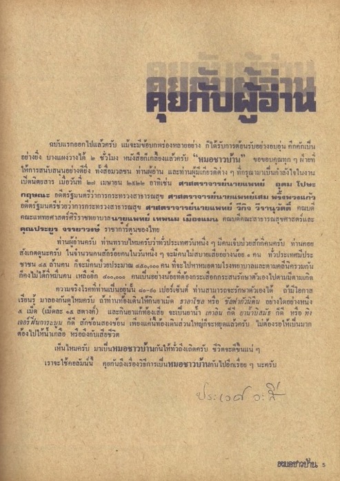 คุยกับผู้อ่าน (นิตยสารหมอชาวบ้าน ฉบับที่ 2 เดือนมิถุนายน พ.ศ. 2522)