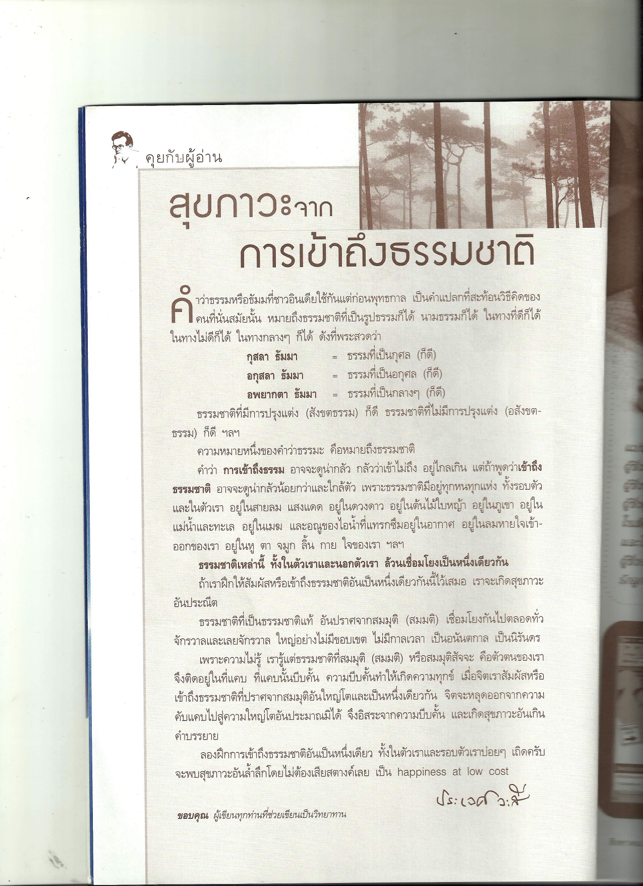 คุยกับผู้อ่าน : สุขภาวะจากการเข้าถึงธรรมชาติ (นิตยสารหมอชาวบ้าน พ.ศ. 2546)