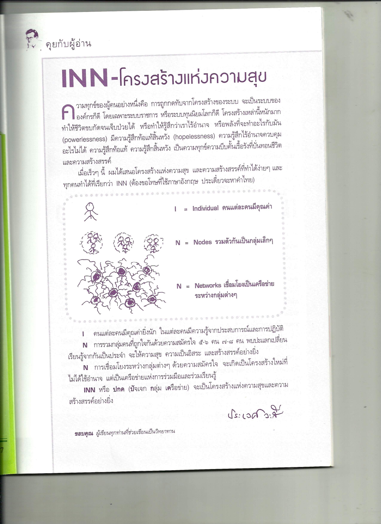คุยกับผู้อ่าน : INN โครงสร้างแห่งความสุข (นิตยสารหมอชาวบ้าน พ.ศ. 2546)
