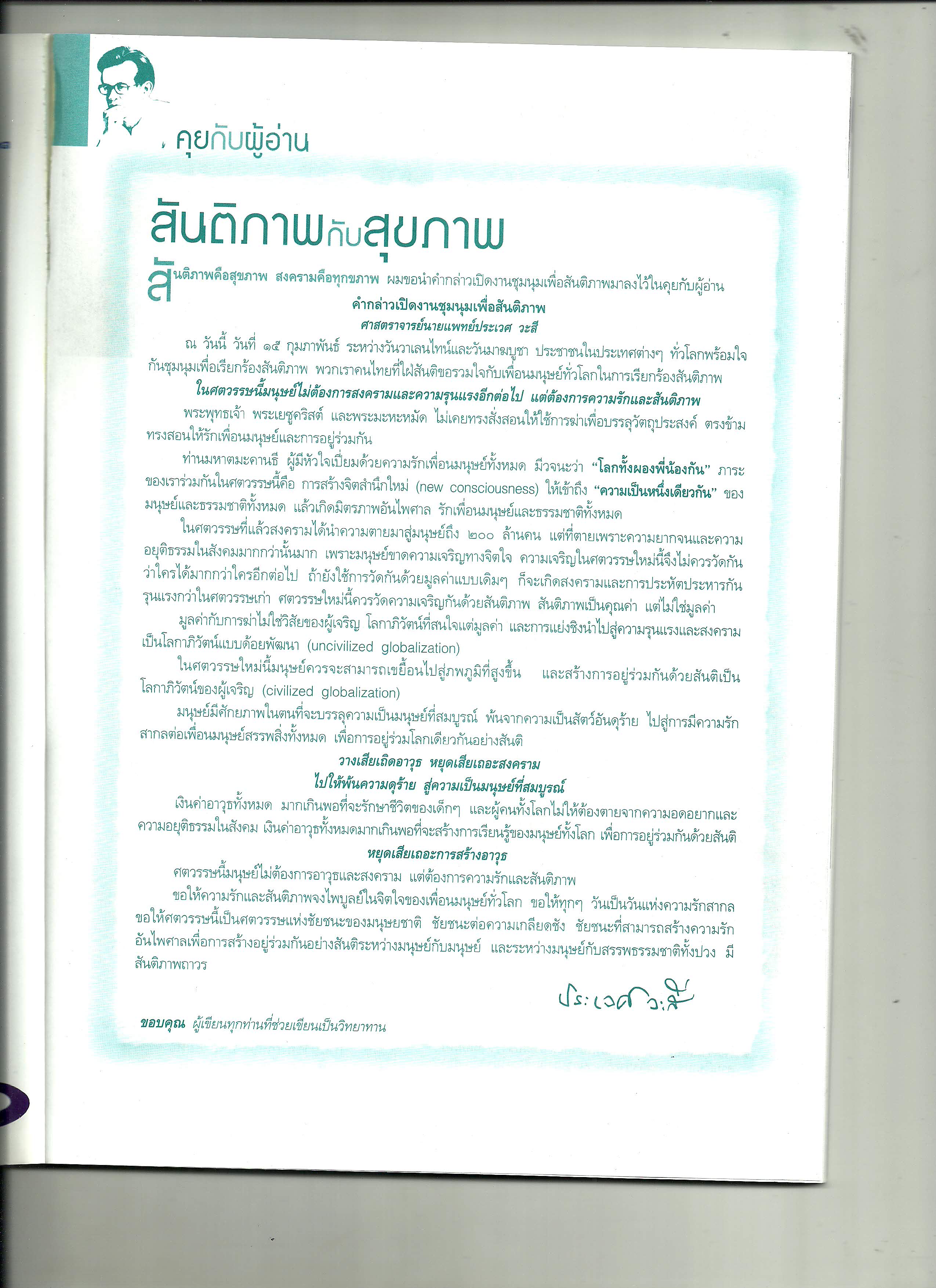 คุยกับผู้อ่าน : สันติภาพกับสุขภาพ (นิตยสารหมอชาวบ้าน ฉบับที่ 287 เดือนมีนาคม พ.ศ. 2546)