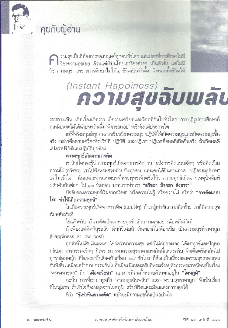 คุยกับผู้อ่าน : ความสุขฉับพลัน (นิตยสารหมอชาวบ้าน ฉบับที่ 273 เดือนมกราคม พ.ศ. 2545)