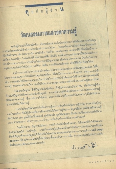 คุยกับผู้อ่าน : วัฒนธรรมแสวงหาความรู้ (นิตยสารหมอชาวบ้าน ฉบับที่ 123 เดือนกรกฎาคม พ.ศ. 2532)
