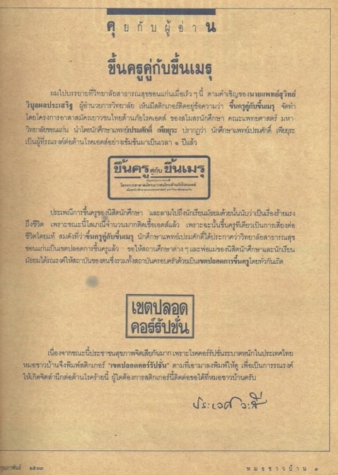 คุยกับผู้อ่าน : ขึ้นครูคู่กับขึ้นเมรุ (นิตยสารหมอชาวบ้าน ฉบับที่ 130 เดือนกุมภาพันธ์ พ.ศ. 2533)