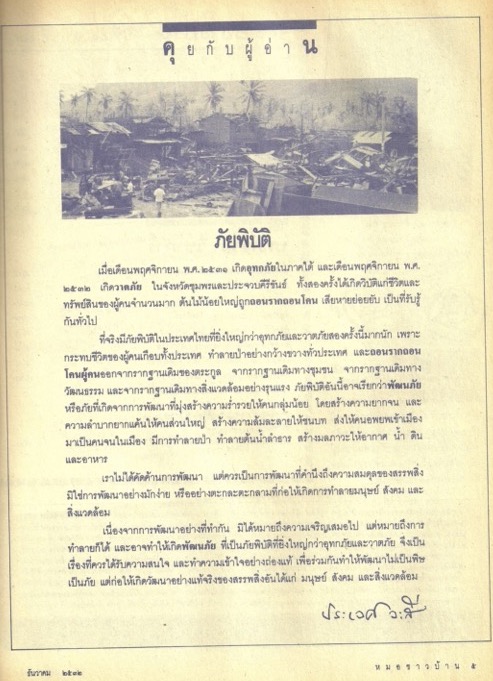 คุยกับผู้อ่าน : ภัยพิบัติ (นิตยสารหมอชาวบ้าน ฉบับที่ 128 เดือนธันวาคม พ.ศ. 2532)