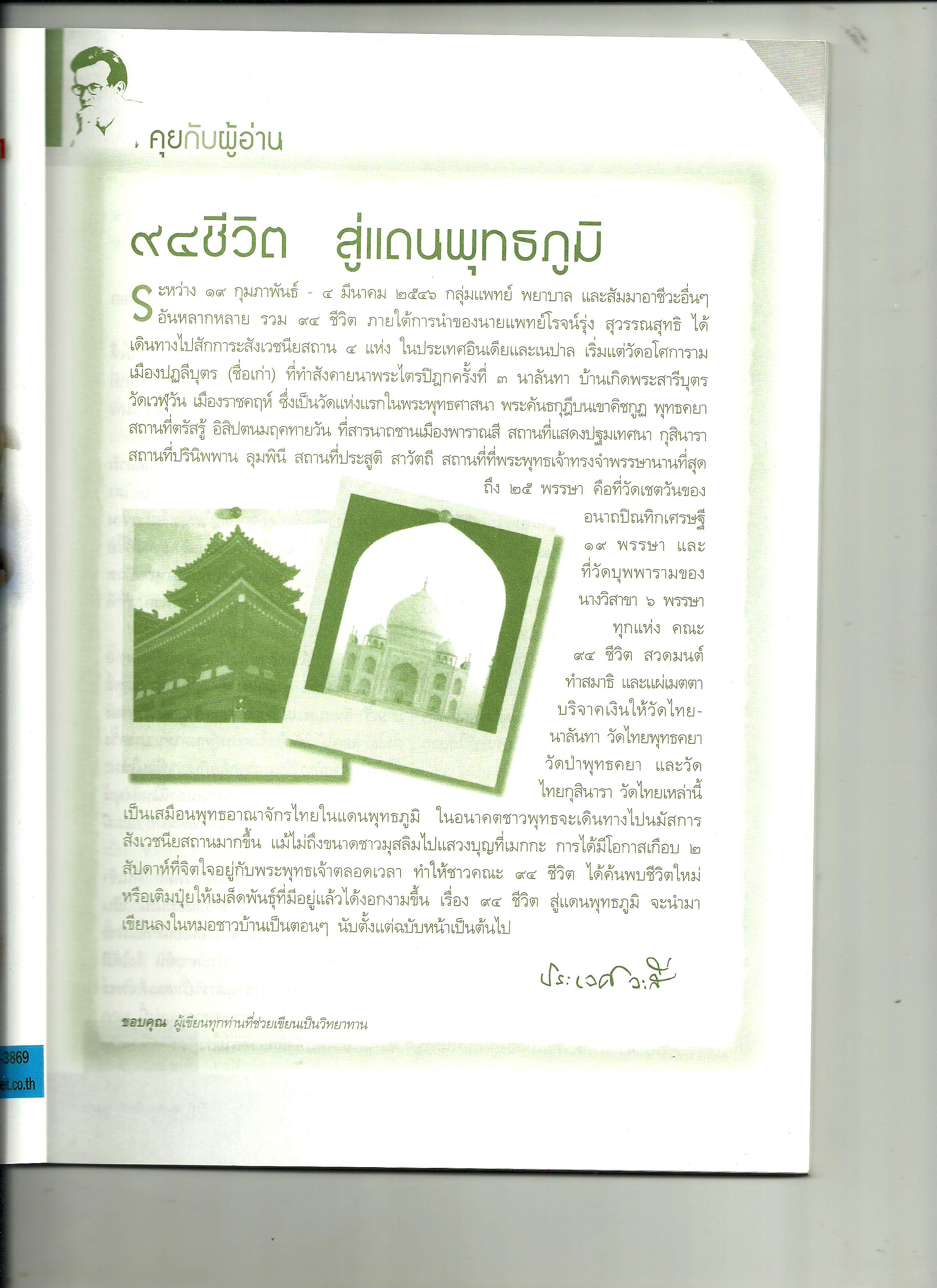 คุยกับผู้อ่าน : 94 ชีวิต สู่แดนพุทธภูมิ (นิตยสารหมอชาวบ้าน ฉบับที่ 288 เดือนเมษายน พ.ศ. 2546)