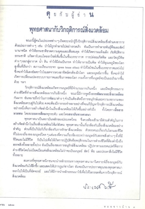 คุยกับผู้อ่าน : พุทธศาสนากับวิกฤตการณ์สิ่งแวดล้อม (นิตยสารหมอชาวบ้าน ฉบับที่ 132 เดือนเมษายน พ.ศ. 2533)