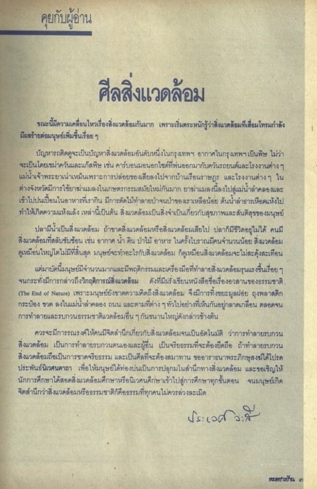 คุยกับผู้อ่าน : ศีลสิ่งแวดล้อม (นิตยสารหมอชาวบ้าน ฉบับที่ 134 เดือนมิถุนายน พ.ศ. 2533)