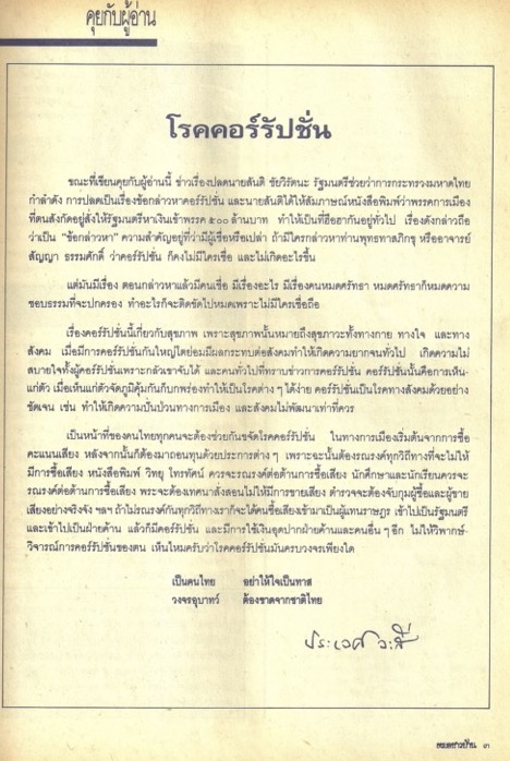 คุยกับผู้อ่าน : โรคคอร์รัปชั่น (นิตยสารหมอชาวบ้าน ฉบับที่ 137 เดือนกันยายน พ.ศ. 2533)