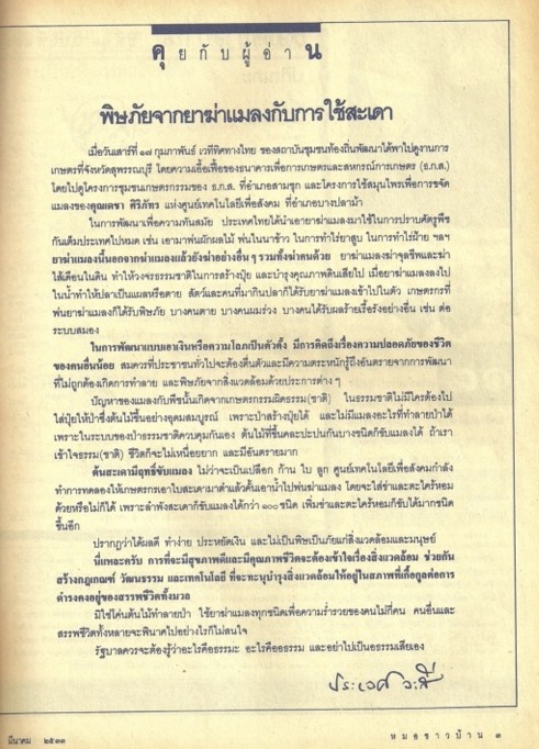 คุยกับผู้อ่าน : พิษภัยจากยาฆ่าแมลงกับการใช้สะเดา (นิตยสารหมอชาวบ้าน ฉบับที่ 131 เดือนมีนาคม พ.ศ. 2533)