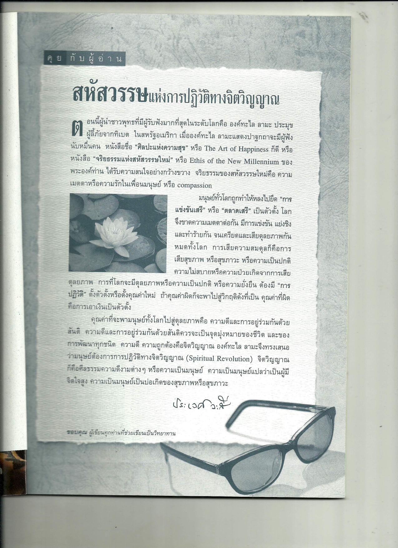 คุยกับผู้อ่าน : สหัสวรรษแห่งการปฏิวัติทางจิตวิญญาณ (นิตยสารหมอชาวบ้าน ฉบับที่ 257 เดือนกันยายน พ.ศ. 2543)