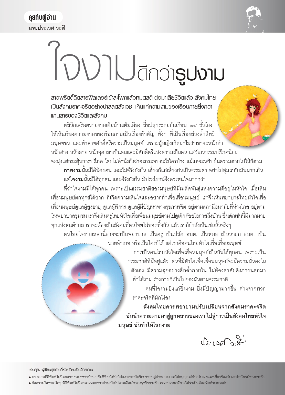 คุยกับผู้อ่าน : ใจงามดีกว่ารูปงาม (นิตยสารหมอชาวบ้าน พ.ศ. 2555)