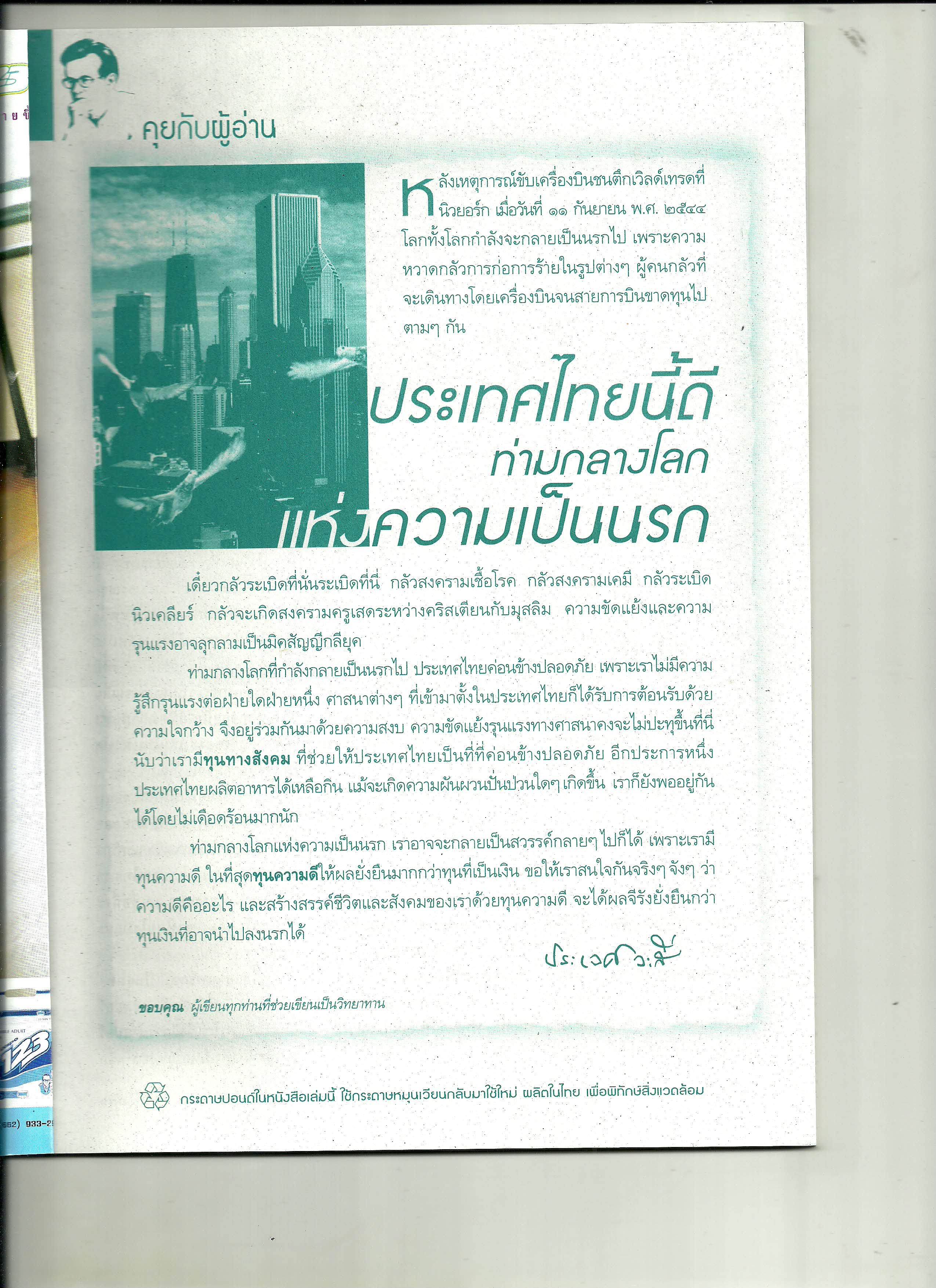 คุยกับผู้อ่าน : ประเทศนี้ดีท่ามกลางโลกแห่งความเป็นนรก (นิตยสารหมอชาวบ้าน ฉบับที่ 271 เดือนพฤศจิกายน พ.ศ. 2544)