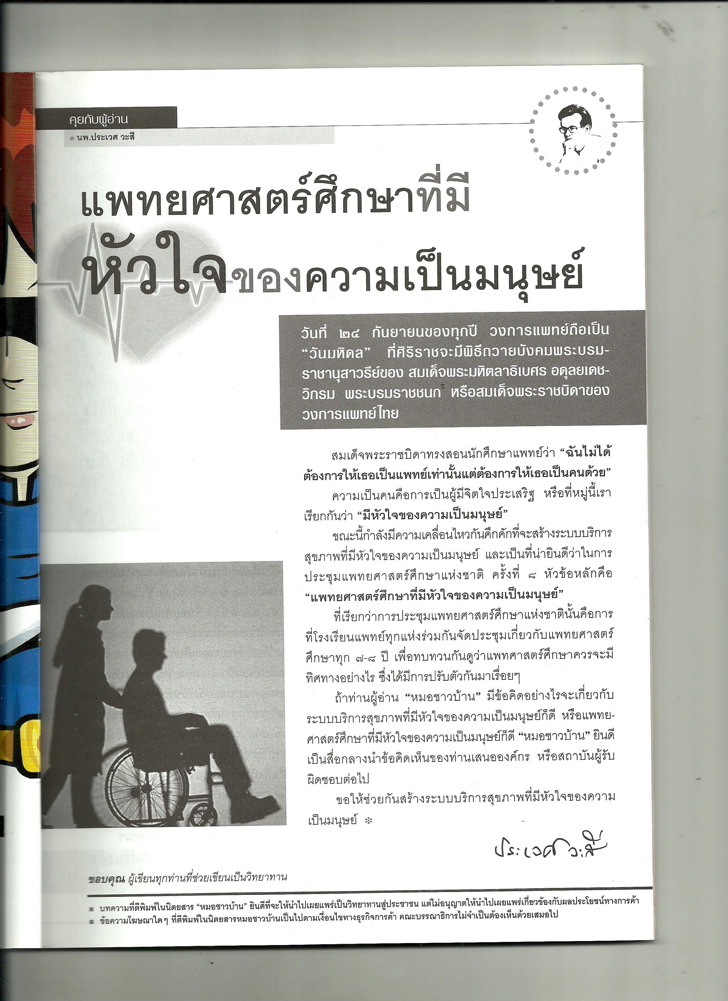 คุยกับผู้อ่าน : แพทย์ศาสตร์ศึกษาที่มีหัวใจของความเป็นมนุษย์ (นิตยสารหมอชาวบ้าน ฉบับที่ 341 เดือนกันยายน พ.ศ. 2550)
