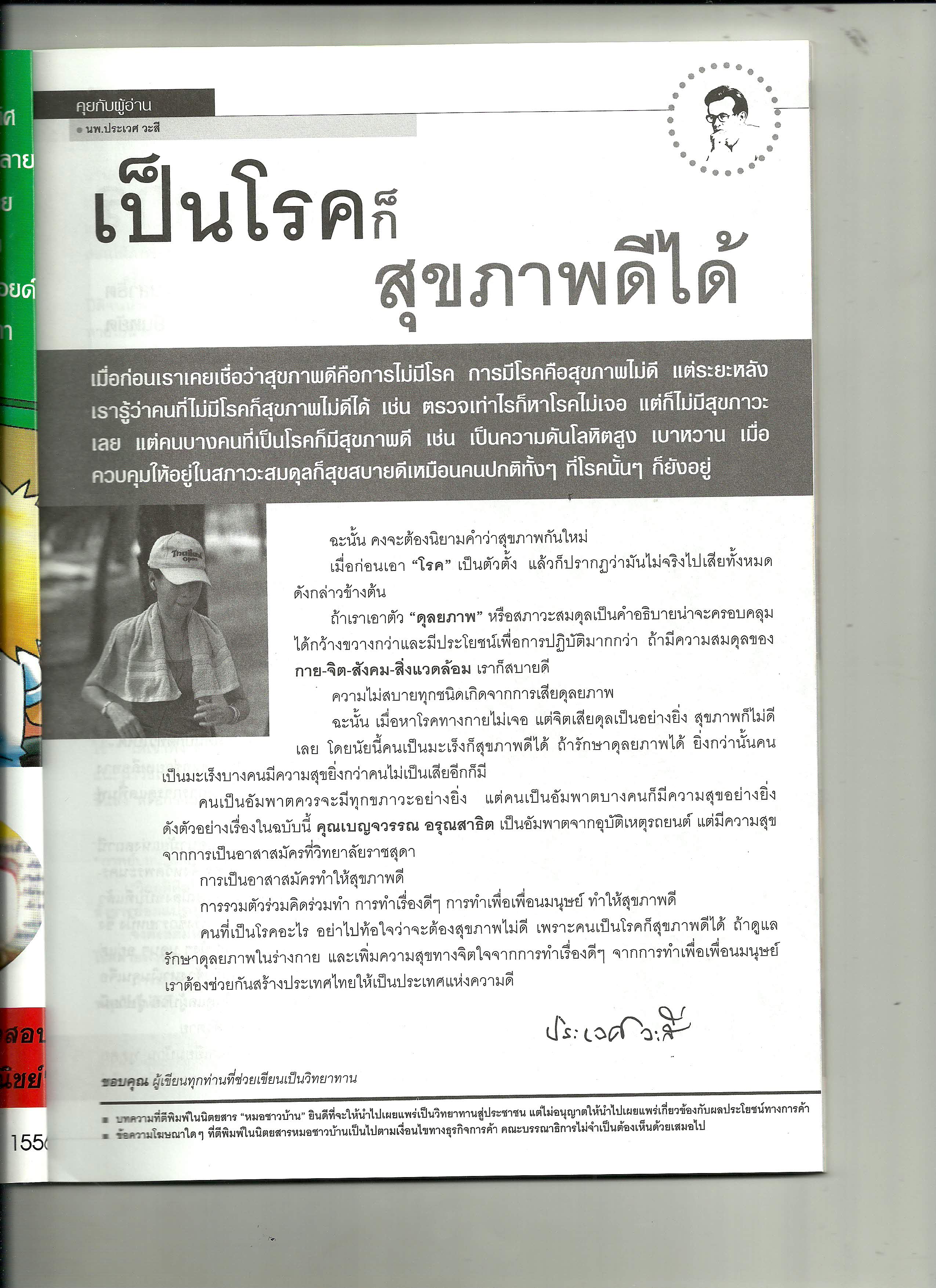 คุยกับผู้อ่าน : เป็นโรคก็สุขภาพดีได้ (นิตยสารหมอชาวบ้าน ฉบับที่ 353 เดือนกันยายน พ.ศ. 2551)