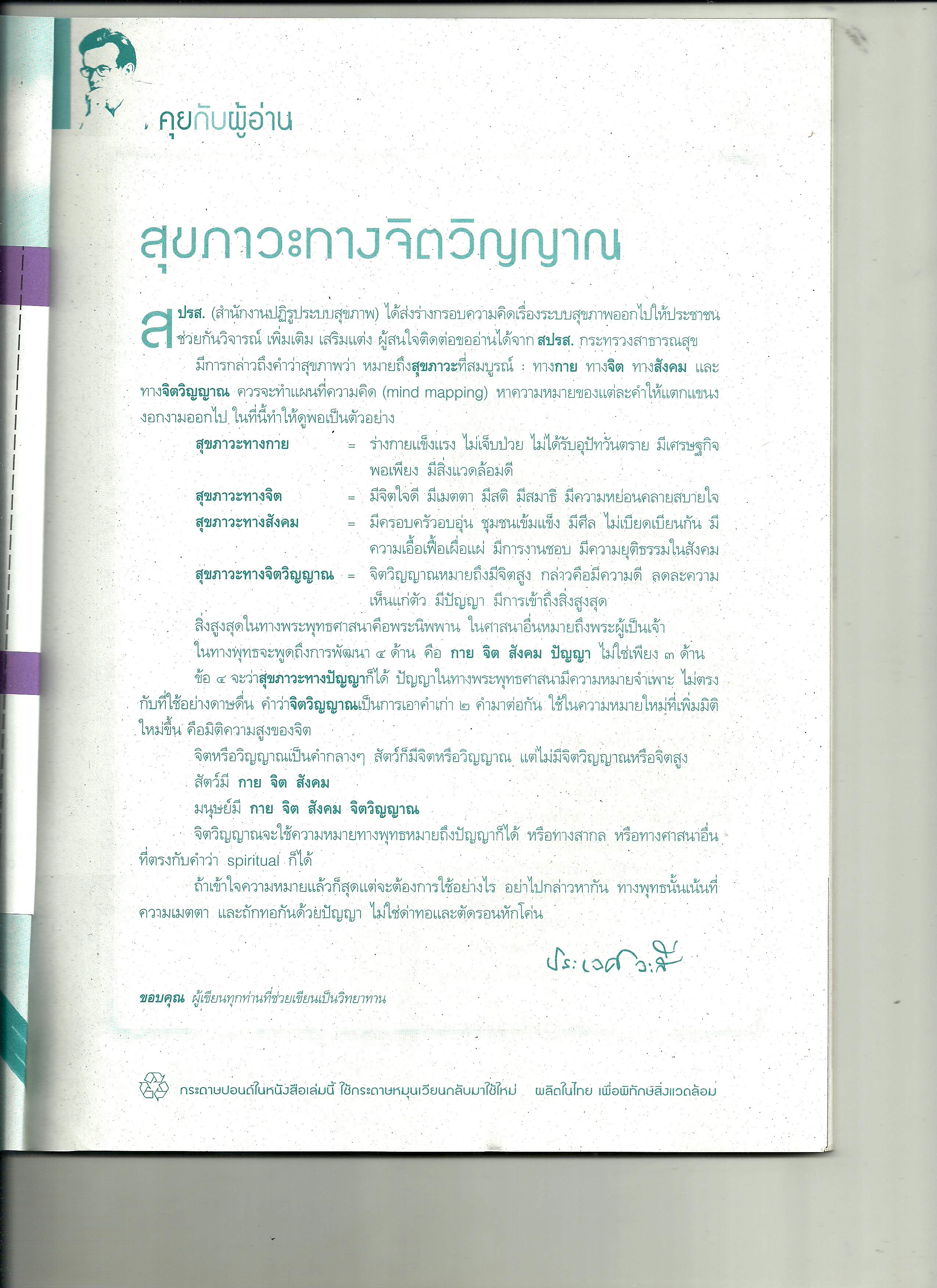 คุยกับผู้อ่าน : สุขภาวะทางจิตวิญญาณ (นิตยสารหมอชาวบ้าน ฉบับที่ 268 เดือนสิงหาคม พ.ศ. 2544)