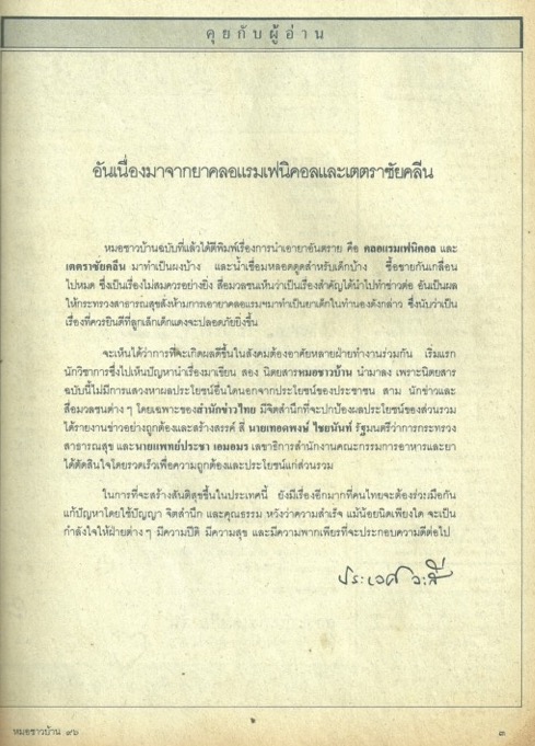คุยกับผู้อ่าน : อันเนื่องมาจากยาคลอแรมแฟนิคอลและเตตราซัยคลีน (นิตยสารหมอชาวบ้าน ฉบับที่ 96 เดือนเมษายน พ.ศ. 2530)