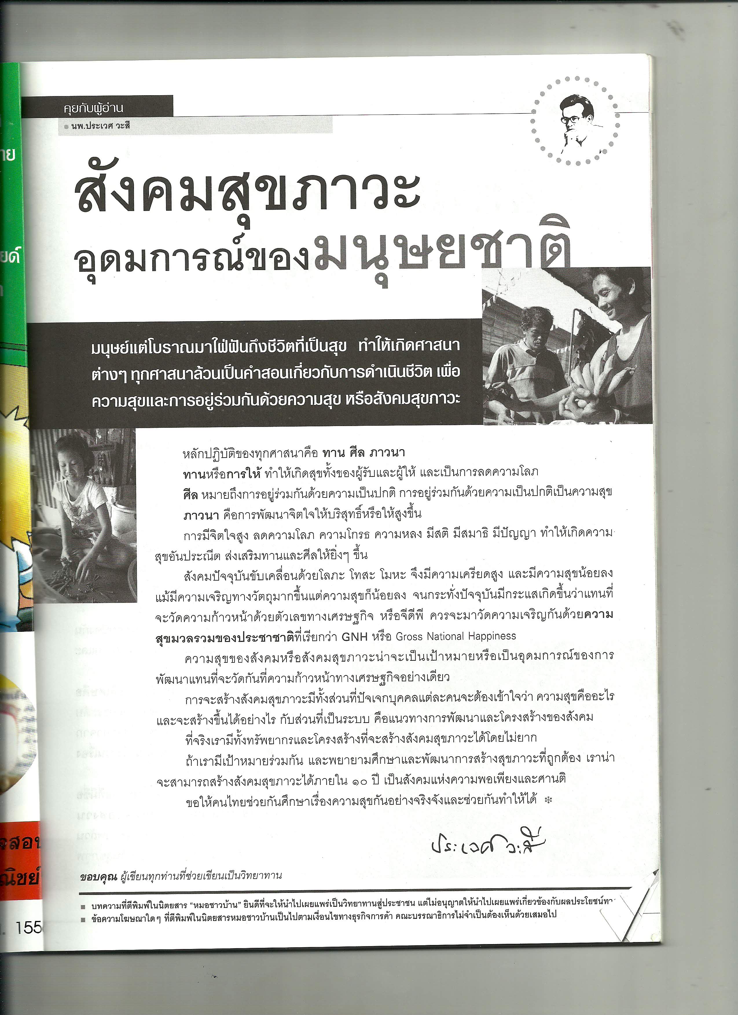 คุยกับผู้อ่าน : สังคมสุขภาวะ อุดมการณ์ของมนุษยชาติ (นิตยสารหมอชาวบ้าน ฉบับที่ 349 เดือนพฤษภาคม พ.ศ. 2551)
