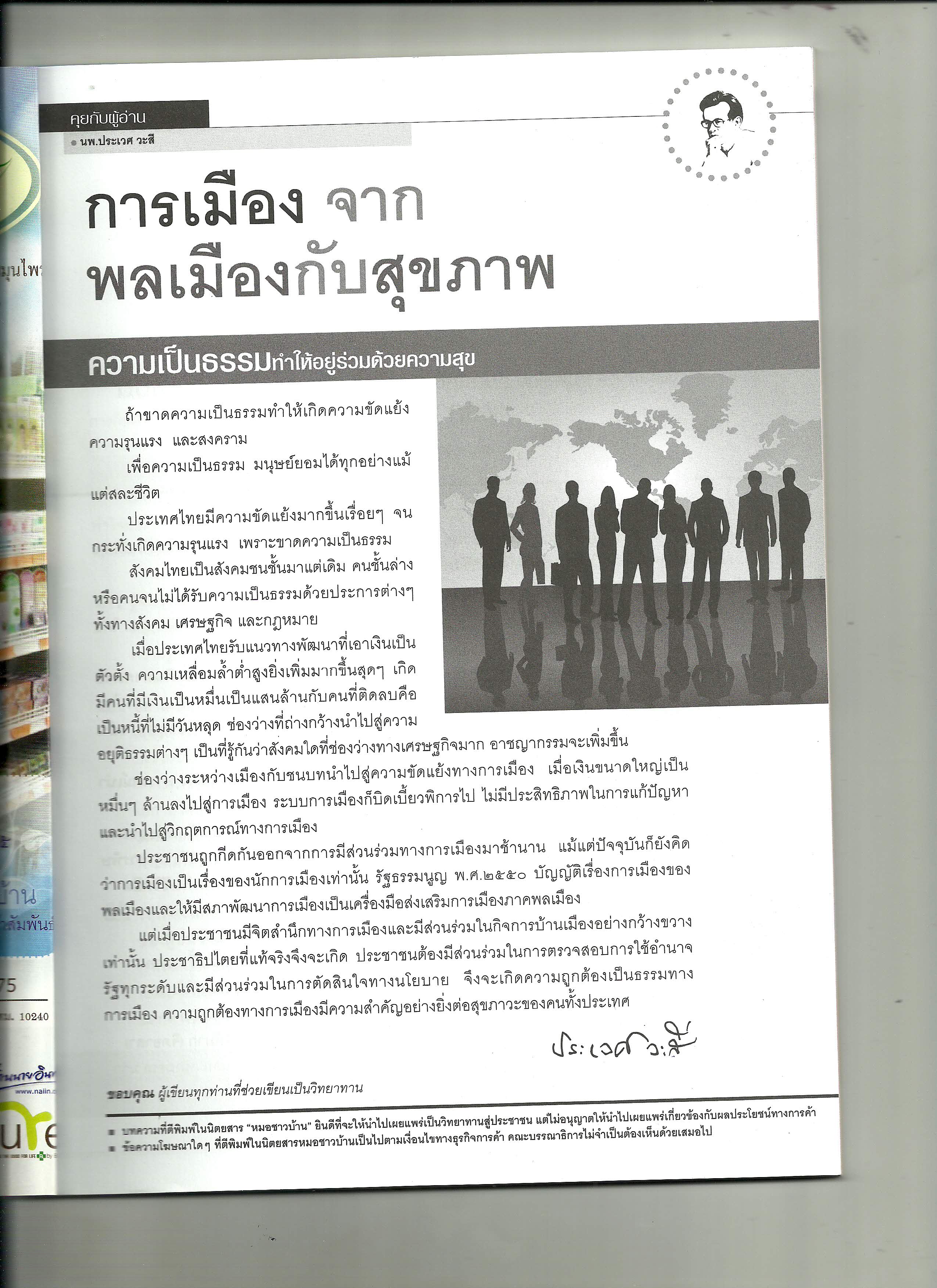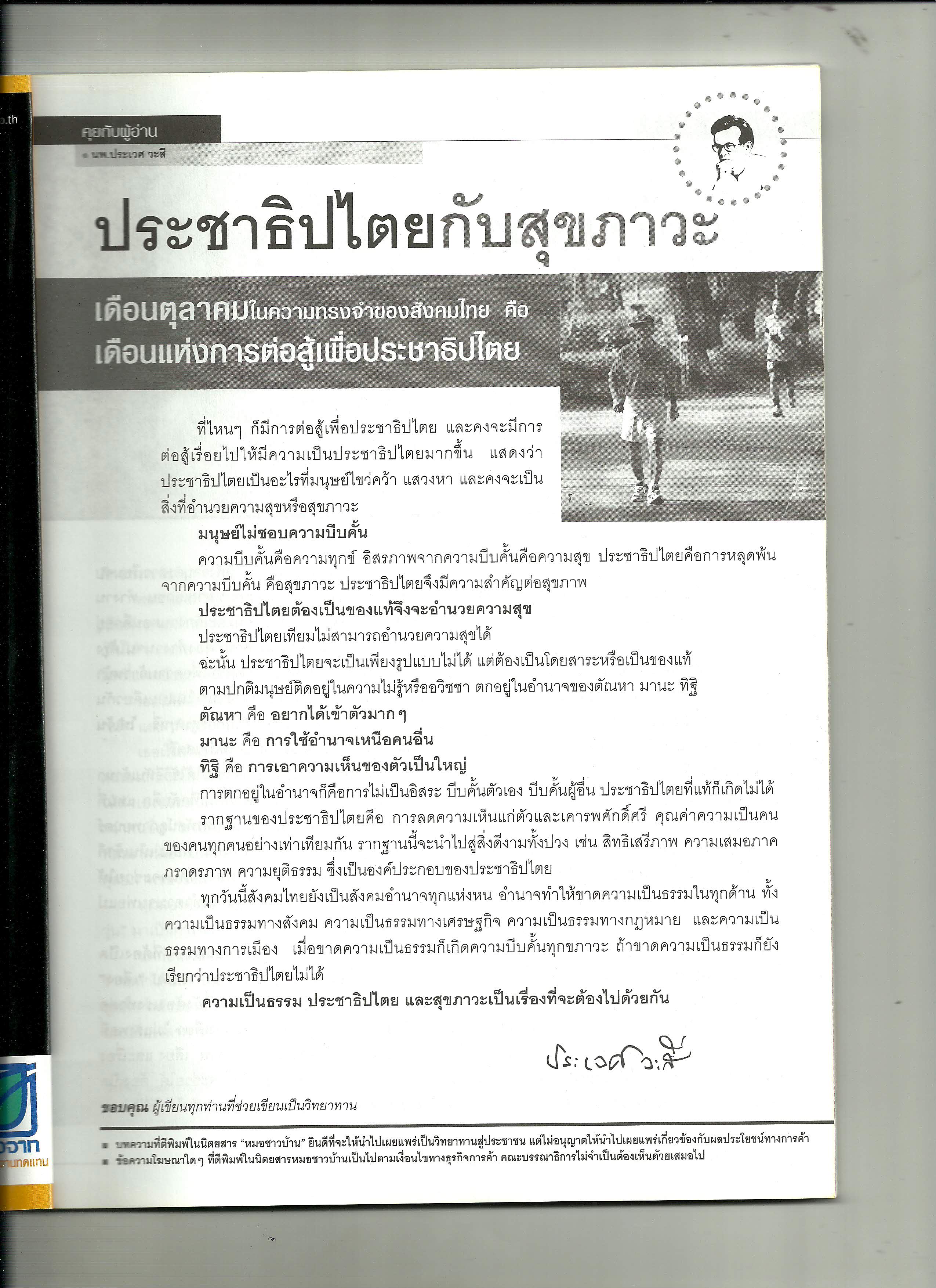 คุยกับผู้อ่าน : ประชาธิปไตยกับสุขภาวะ (นิตยสารหมอชาวบ้าน ฉบับที่ 354 เดือนตุลาคม พ.ศ. 2551)