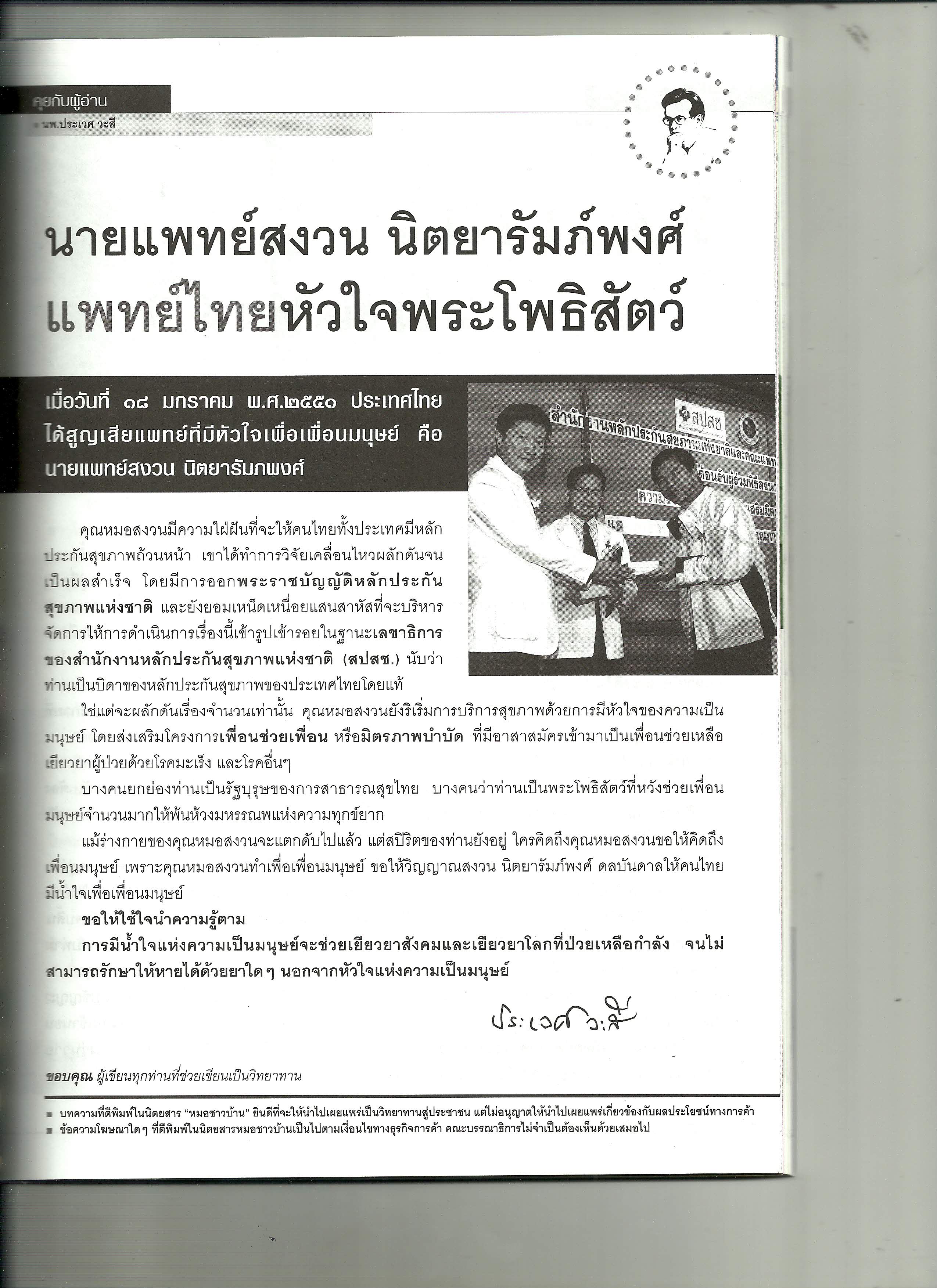 คุยกับผู้อ่าน : นายแพทย์สงวน นิตยารัมภ์พงศ์ แพทย์ไทยหัวใจพระโพธิสัตว์ (นิตยสารหมอชาวบ้าน ฉบับที่ 347 เดือนมีนาคม พ.ศ. 2551)