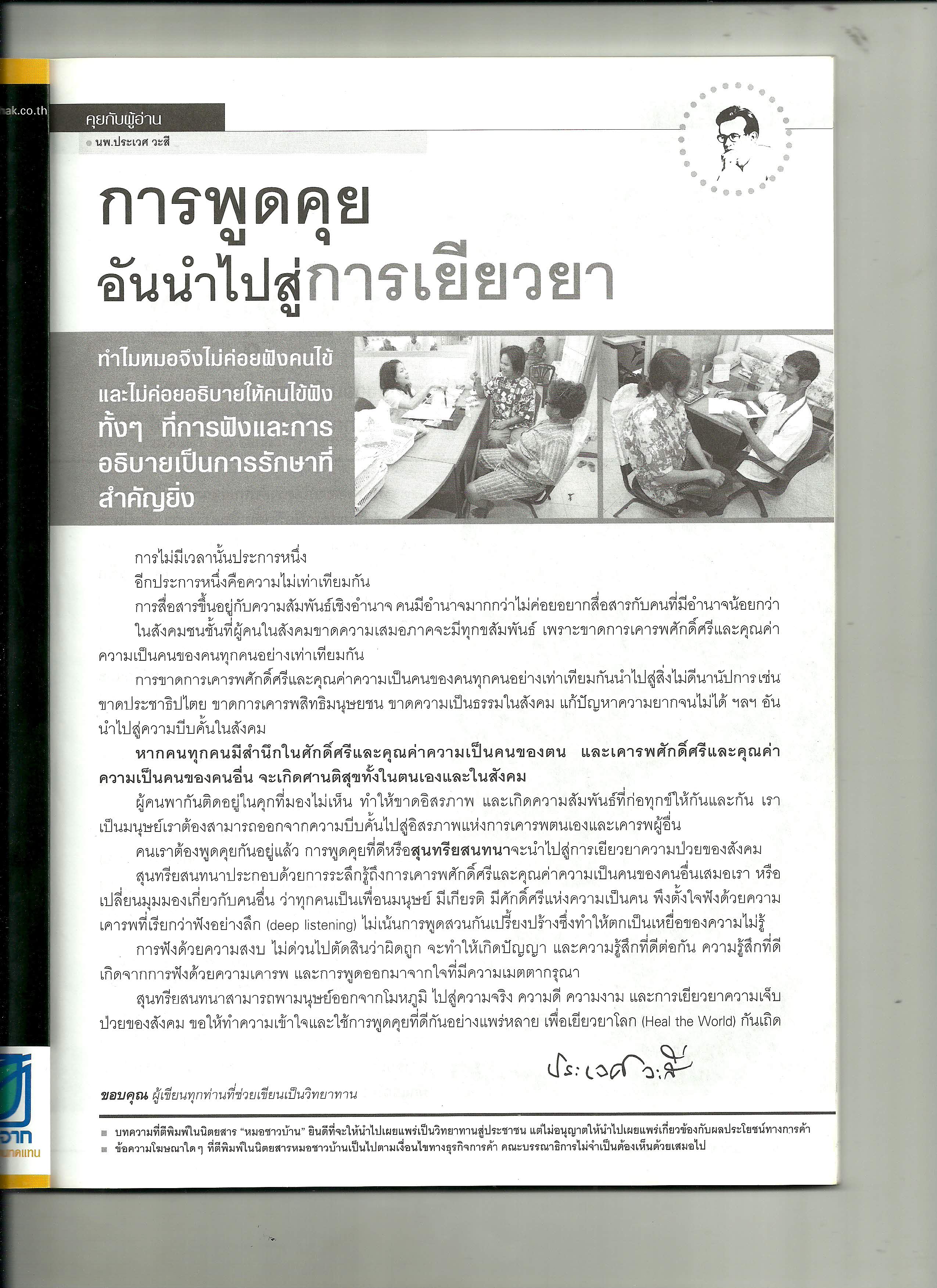 คุยกับผู้อ่าน : การพูดคุยอันนำไปสู่การเยียวยา (นิตยสารหมอชาวบ้าน ฉบับที่ 350 เดือนมิถุนายน พ.ศ. 2551)