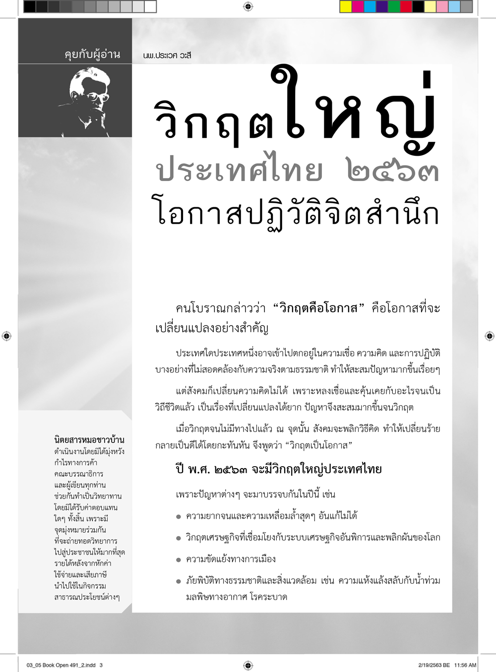 คุยกับผู้อ่าน: วิกฤตใหญ่ ประเทศไทย 2563 โอกาสปฏิวัติจิตสำนึก (นิตยสารหมอชาวบ้าน ฉบับที่ 491 เดือน มีนาคม พ.ศ. 2563)