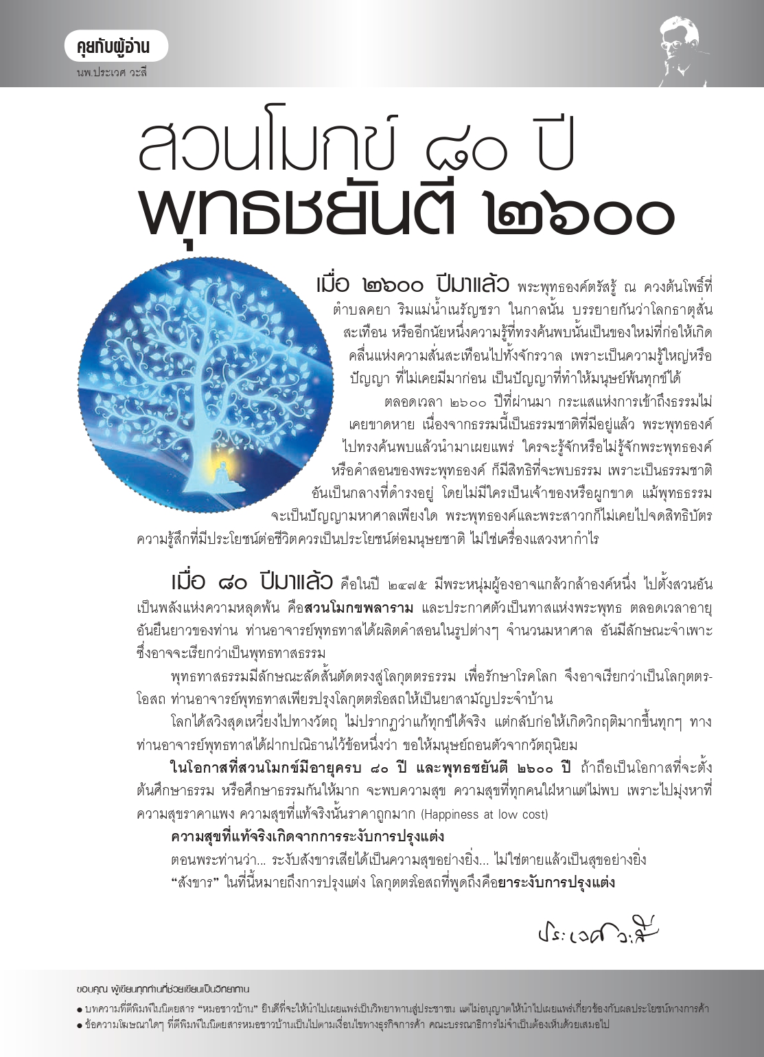 คุยกับผู้อ่าน : สวนโมกข์ 80 ปี พุทธชยันตี 2600 (นิตยสารหมอชาวบ้าน พ.ศ. 2555)
