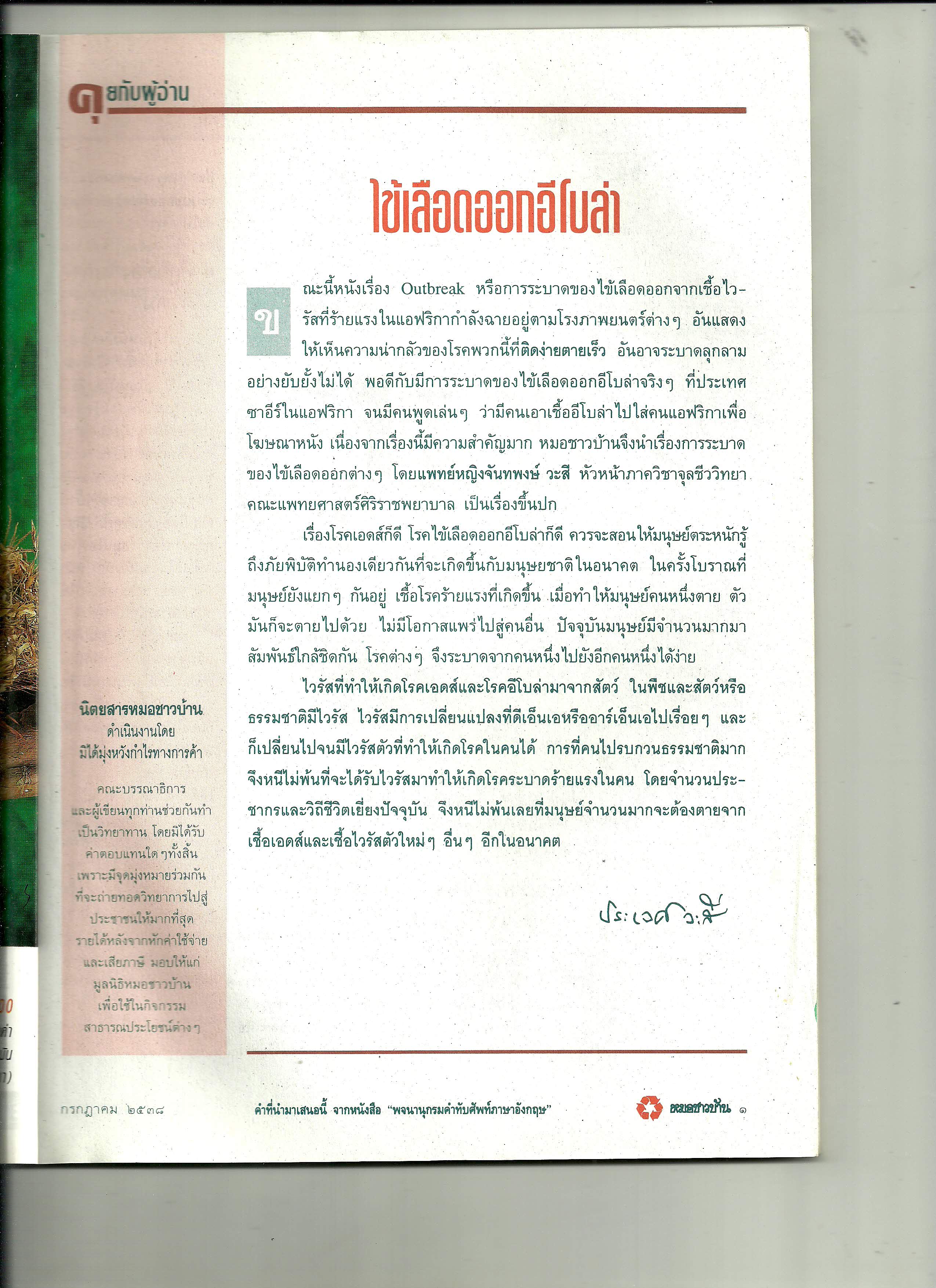 คุยกับผู้อ่าน : ไข้เลือดออกอีโบล่า (นิตยสารหมอชาวบ้าน ฉบับที่ 195 เดือนกรกฎาคม พ.ศ. 2538)