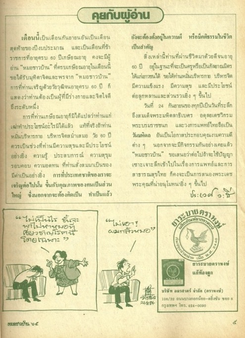 คุยกับผู้อ่าน (นิตยสารหมอชาวบ้าน ฉบับที่ 29 เดือนกันยายน พ.ศ. 2524)