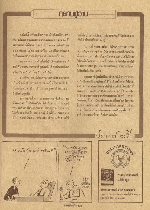 คุยกับผู้อ่าน (นิตยสารหมอชาวบ้าน ฉบับที่ 52 เดือนสิงหาคม พ.ศ. 2526)