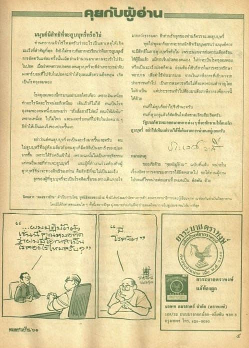 คุยกับผู้อ่าน : สิทธิของผู้ไม่สูบบุหรี่ (นิตยสารหมอชาวบ้าน ฉบับที่ 139 เดือนพฤศจิกายน พ.ศ. 2533)