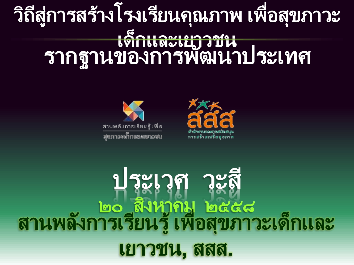 วิถีสู่การสร้างโรงเรียนคุณภาพเพื่อสุขภาวะเด็กและเยาวชน รากฐานของการพัฒนาประเทศ
